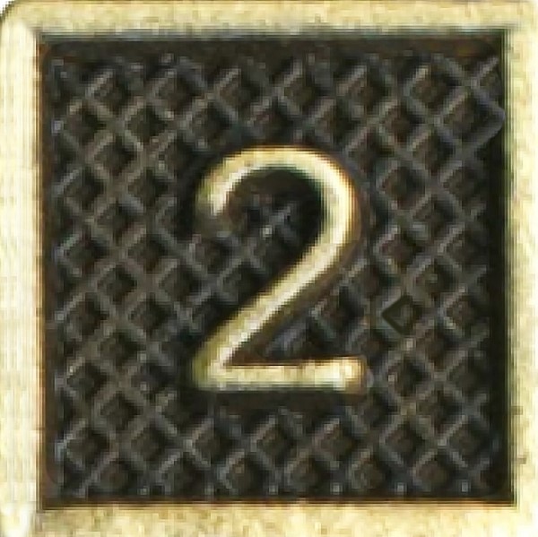 Cet indicateur prend la forme d’un chiffre arabe sur une plaque carrée à rebord, de la même couleur et du même matériau que l’agrafe de la médaille.