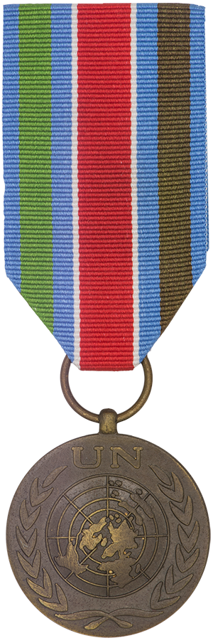 La médaille se porte conformément à l’ordre de préséance prescrit dans la Directive canadienne sur les ordres, décorations et médailles, et de la manière suivante : sur le côté gauche de la poitrine, suspendue au ruban décrit ci-dessus, après la Médaille de la Mission d’observation des Nations Unies en El Salvador et avant la Médaille de la Mission préparatoire de Nations Unies au Cambodge.
