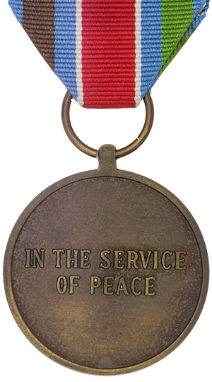 Au revers figurent les mots « IN THE SERVICE OF PEACE » en anglais (et seulement en anglais).