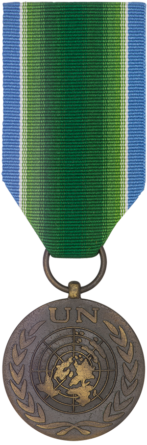 Cette médaille est décernée en reconnaissance de 6 mois de service consécutifs depuis le 20 janvier 1948 (la participation canadienne s’est terminée le 20 janvier 1979).