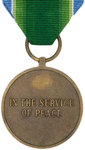 Au revers figurent les mots « IN THE SERVICE OF PEACE » en anglais (et seulement en anglais).