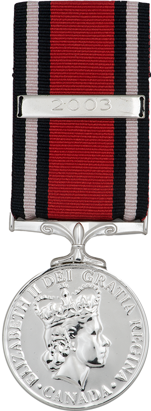 Jusqu’en 2002, une griffe simple liait la médaille à une barrette droite, simple et fixe. Depuis 2002, la médaille est fixée à une barrette de suspension droite ornée d’une fleur de lys similaire à celle des Médailles pour services distingués.