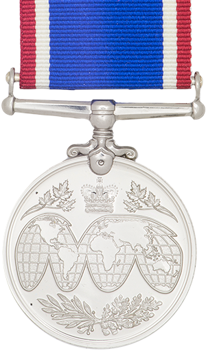 Selon la tradition généralement respectée depuis le milieu du XIXe, l’avers de la médaille illustre de qui la distinction émane, le revers indique ce que la distinction représente et la tranche précise à qui elle est remise. L’effigie du souverain de même que la Couronne représentent non seulement le roi en tant que chef d’État du Canada (ce que soulignent le mot « CANADA » et les feuilles d’érable des deux côtés de la médaille), mais aussi en tant que FONS HONORIS (la source de tous les honneurs). Le roi est la seule personne qui peut créer une distinction officielle au Canada, et toutes les distinctions canadiennes sont décernées en son nom. Les feuilles d’érable représentent le Canada, celles sur le revers qui sont réunies sur une même tige provenant des Armoiries royales du Canada. Le globe représente l’étendue de l’engagement et du service canadien dans le monde tandis que les feuilles de laurier et de chêne représentent l’honneur, la force et la victoire.