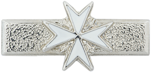 L’insigne consiste en une barrette argent ornée d’une croix de Malte blanche à bordure argentée. La barrette porte un numéro au revers.