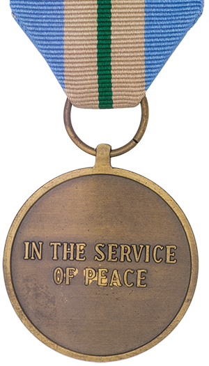 Au revers figurent les mots « IN THE SERVICE OF PEACE » en anglais (et seulement en anglais).