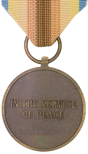 Au revers figurent les mots « IN THE SERVICE OF PEACE » en anglais (et seulement en anglais).