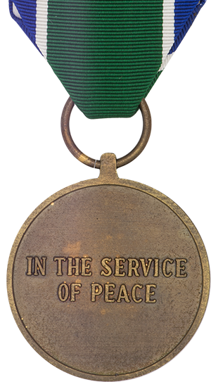 - Au revers figurent les mots « IN THE SERVICE OF PEACE » en anglais (et seulement en anglais).