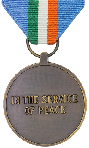 - Au revers figurent les mots « IN THE SERVICE OF PEACE » en anglais (et seulement en anglais).