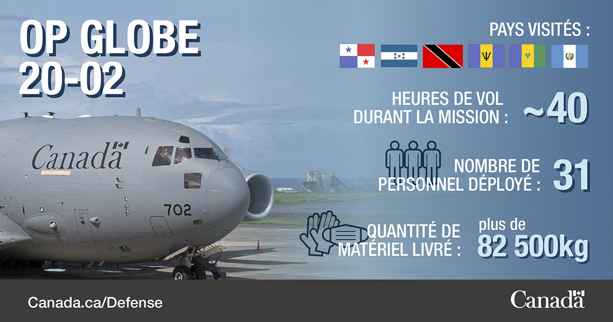 L'aide des Forces armées canadiennes (FAC) a été demandée le 31 janvier 2020 pour appuyer les efforts du gouvernement du Canada visant à accueillir et à héberger temporairement des Canadiens à leur retour de Wuhan, en Chine; du Diamond Princess au Japon; et du Grand Princess à San Francisco aux États-Unis, dans le cadre de l’opération GLOBE.