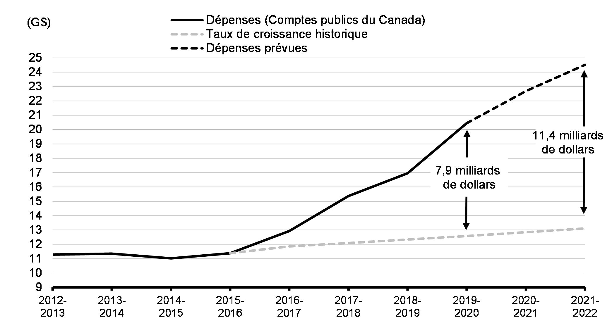 Investissements autochtones : 2012-2013 à 2021-2022, G$