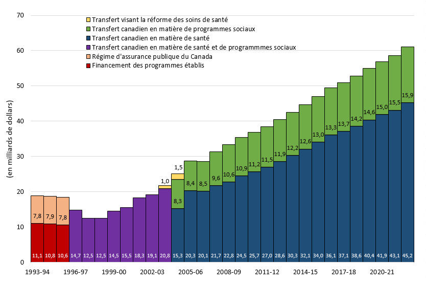 Voici un bref historique de l'évolution des transferts en matière de santé et de programmes sociaux au Canada :