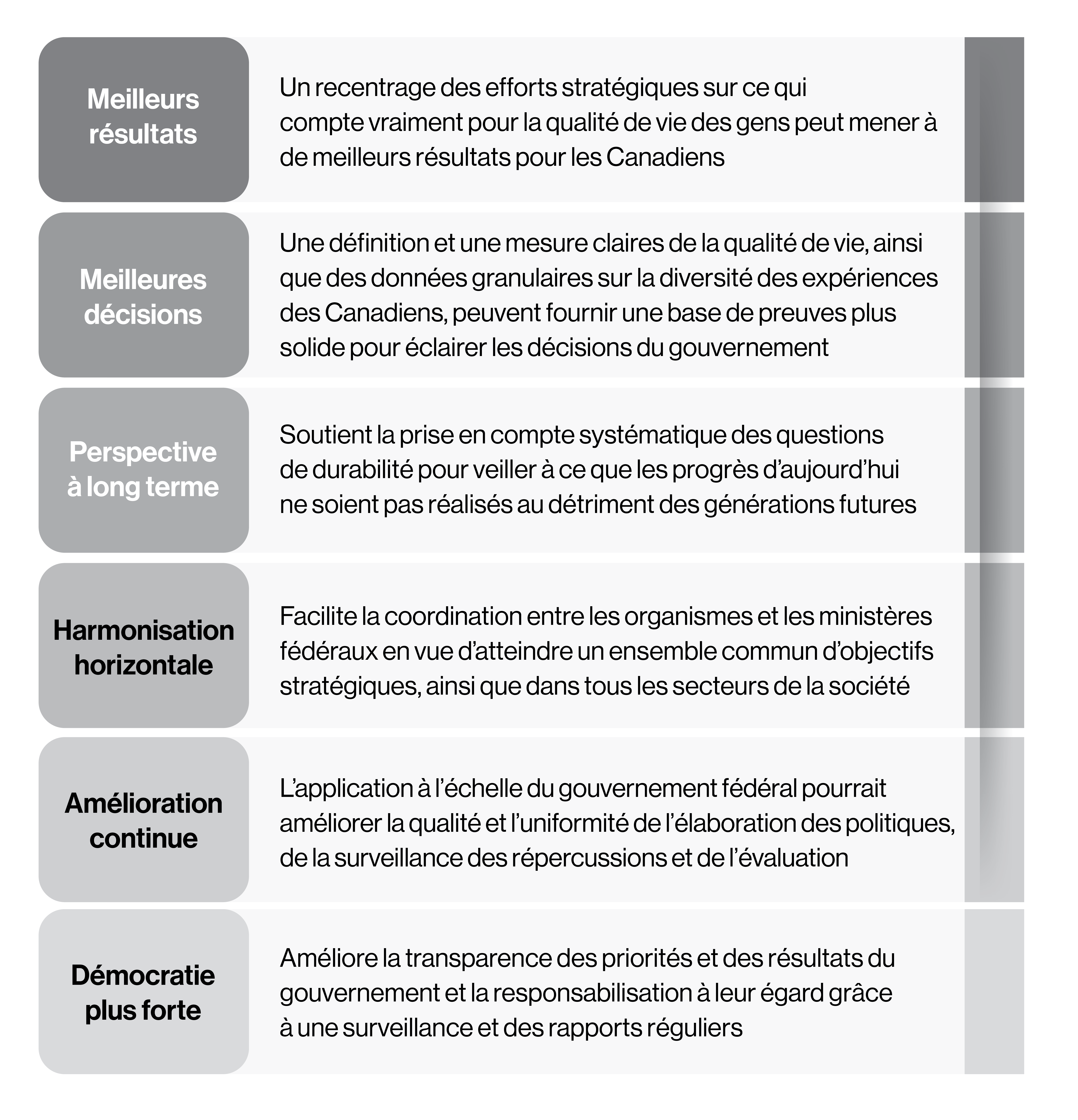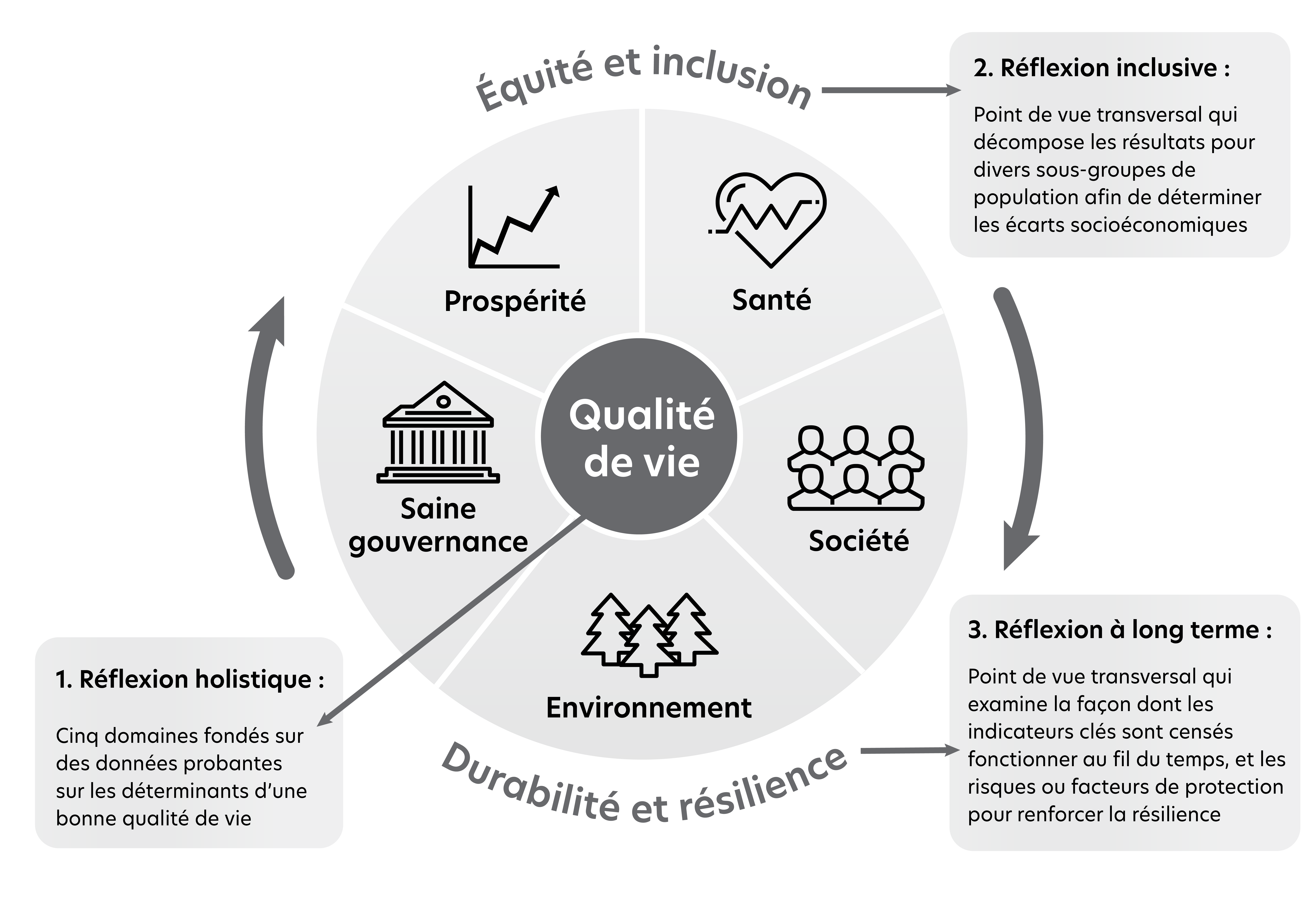 - expose les raisons qui justifient l’adoption d’une approche de la qualité de vie dans la prise de décisions du gouvernement;