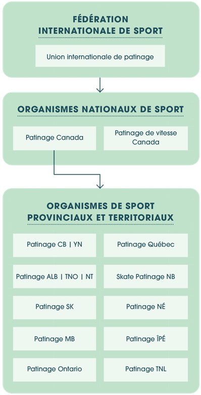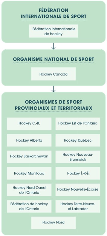 Il existe de nombreuses institutions dans le monde du sport canadien, y compris différents paliers de gouvernement qui se partagent les responsabilités en matière de sport et d’activité physique ainsi que d’innombrables organismes de sport. Bien que ces institutions fassent toutes partie de ce qu’on pourrait appeler un « système », celui-ci est souvent décrit comme fracturé et fragmenté, voire inexistant. De nombreux participants qui ont participé à nos activités de mobilisation ont eu du mal à décrire ou à brosser le tableau d’un système sportif canadien cohérent. Certains nous ont carrément dit qu’il n’y avait pas de système sportif au Canada.