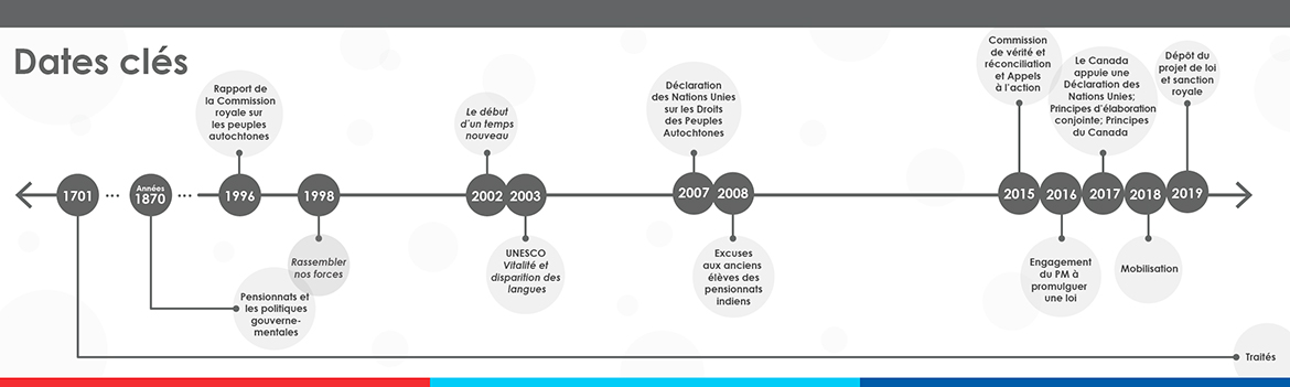 Le ministère du Patrimoine canadien, l'Assemblée des Premières Nations, Inuit Tapiriit Kanatami et la Nation métisse, ont travaillé ensemble à l'élaboration conjointe d'une législation nationale sur les langues des Premières Nations, des Inuit et des Métis dont le contenu reflèterait les différents contextes géographiques, politiques, législatifs, et culturels qui ont une incidence sur la préservation, la promotion et la revitalisation des langues. Renseignez-vous sur nos travaux de collaboration.
