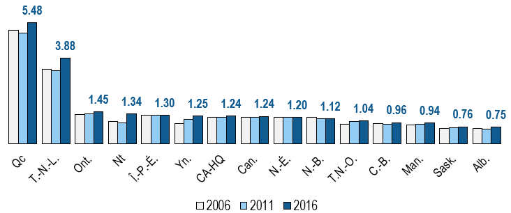 - Tableau 10 : taux de bilinguisme des Canadiens, 2006 à 2021