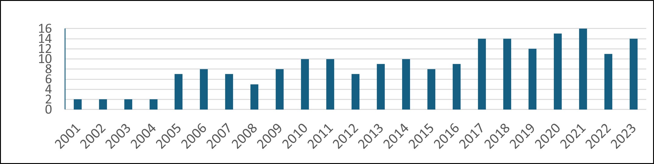 Figure E-2 : Ratio d’appariement offert dans le cadre du volet Incitatifs aux fonds de dotation de 2001-2002 à 2023-2024 – texte alternatif