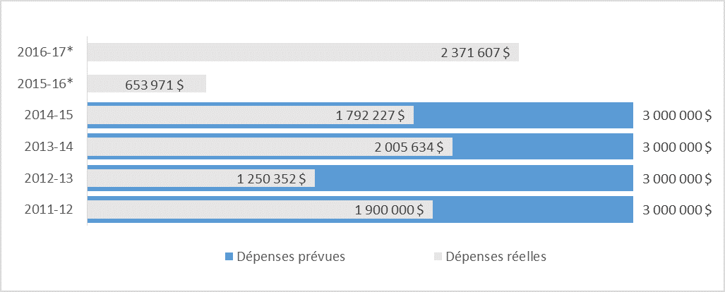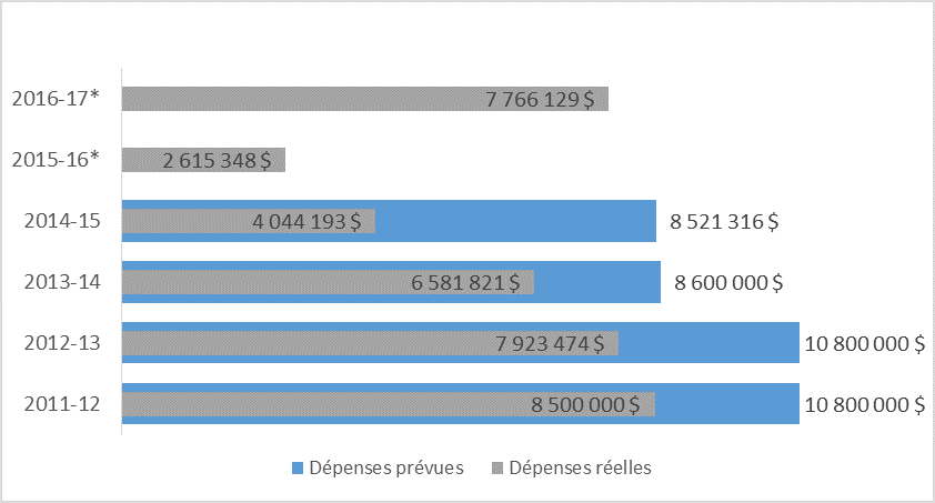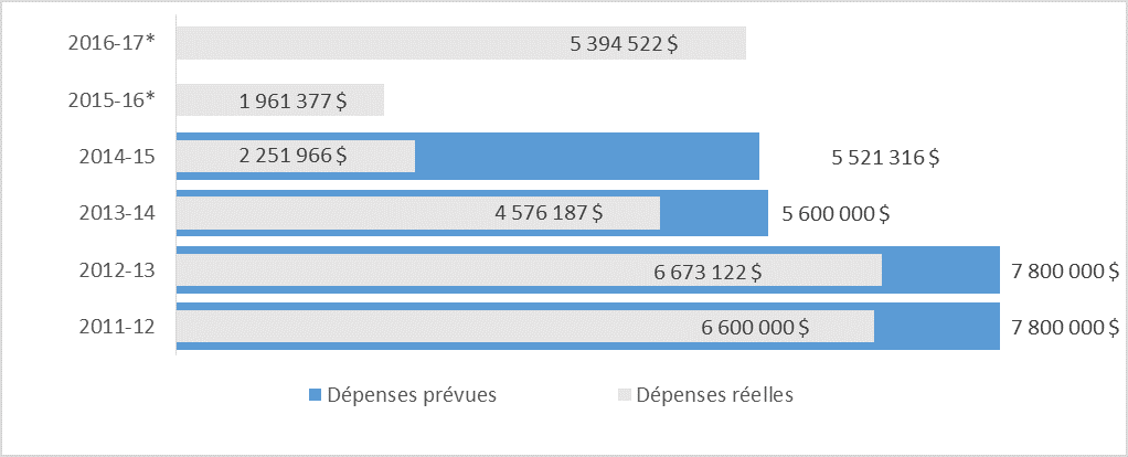 - Tableau 2 : dépenses prévues et dépenses réelles du Programme du multiculturalisme (de 2011-2012 à 2016-2017)