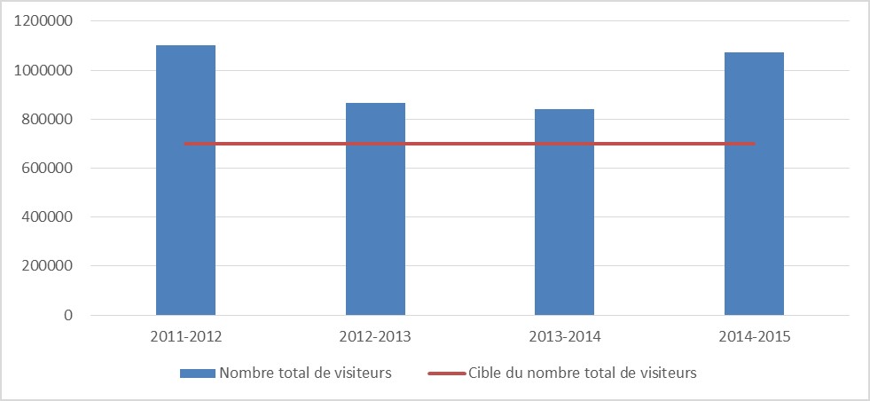 Description du graphique Nombre total des visiteurs et nombre ciblé pour les années 2011-2012 à 2014-2015.