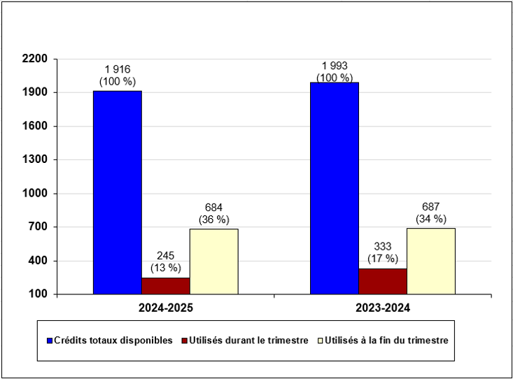 | Cumul des crédits utilisés | 684 (36 %) | 687 (34 %) |