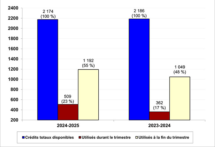 | Cumul des crédits utilisés | 1 192 (55 %) | 1 049 (48 %) |