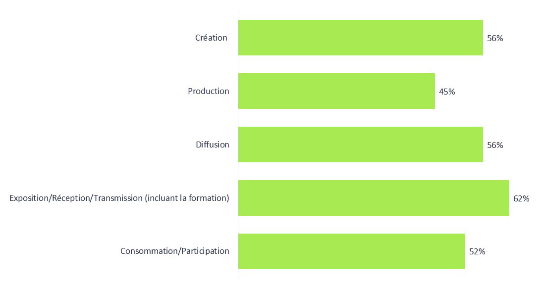 Exposition/Réception/Transmission (incluant la formation) | 62% |