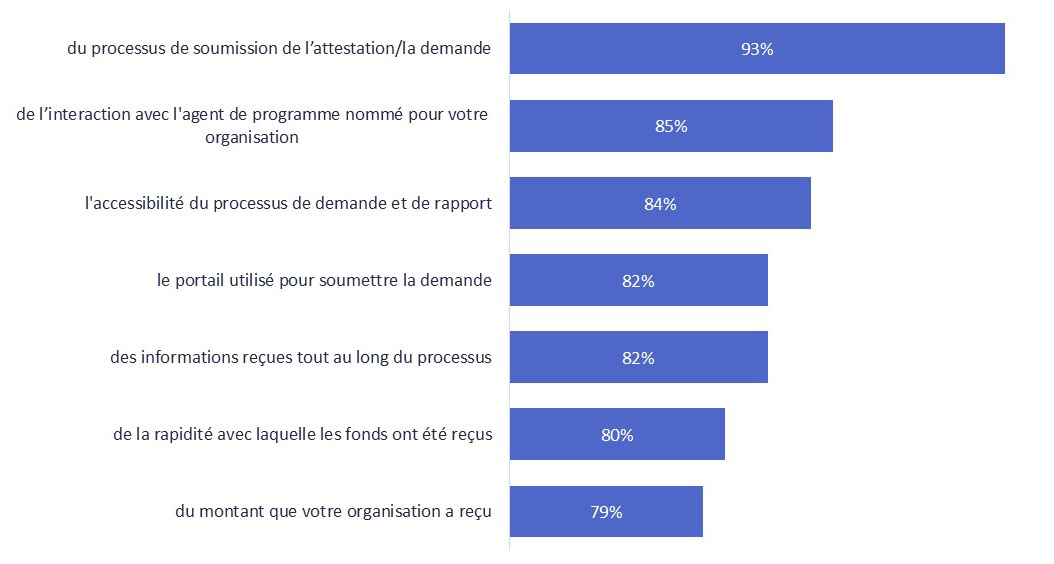 Les données qualitatives montrent que les organisations ont eu une expérience positive en accédant aux Fonds de relance et de réouverture