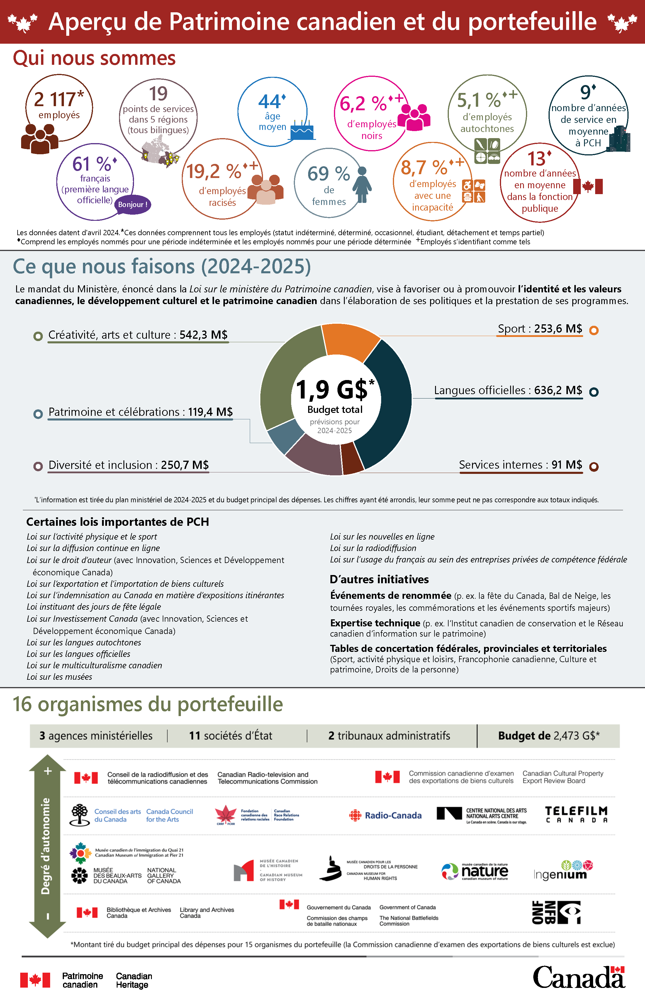 Infographie – Aperçu du ministère du Patrimoine canadien (PCH)
