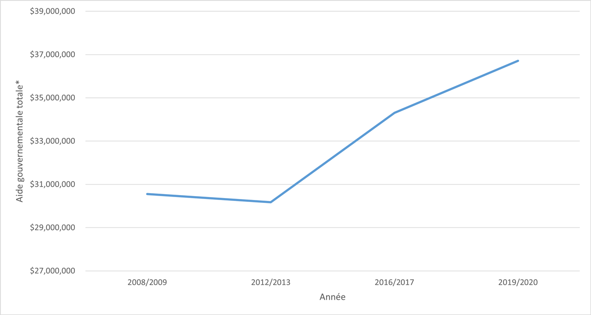 - Figure 5 : Aide gouvernementale totale reçue par les bénéficiaires du FLC de langue anglaise — 2008-2009, 2012-2013, 2016-2017 et 2019-2020