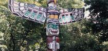 Ce mât totémique est situé sur la rue Slater, à Ottawa, en bordure du parc de la Confédération.