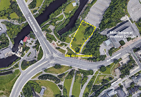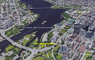 Le monument aura un emplacement de choix au coin nord-est de l’intersection de la rue Wellington et du pont du Portage, à proximité de la rivière des Outaouais. Situé à un endroit central, le site offre des vues de la Cité judiciaire, un équilibre entre visibilité publique et espace de contemplation, ainsi qu’une bonne capacité à accueillir de grands rassemblements.