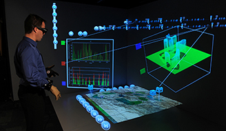 L’environnement immersif virtuel est utilisé pour améliorer la compréhension d’une personne ou d’un groupe de personnes par rapport à une situation complexe. Ce système combine la simulation, la visualisation et les interactions évoluées entre les utilisateurs afin de générer, d’explorer, d’organiser et de traiter de l’information.
