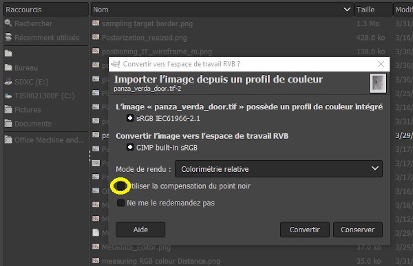 - Remarque au sujet de la modification de fichiers ayant des profils de couleurs