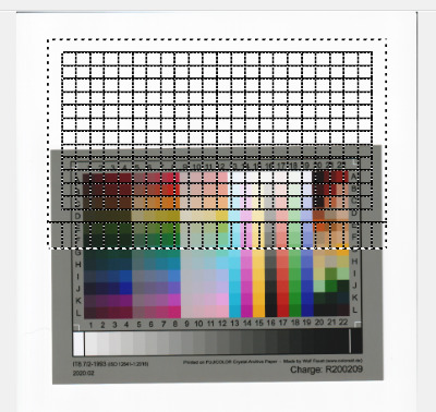 Ces démarches permettent de confirmer que les couleurs sont détectées uniformément sur la plaque du numériseur et de s’assurer qu’aucun éclairage parasite ne perturbe la numérisation. Une carte d’échantillonnage grise est nécessaire; les cartes IT8 suffisent, car les échantillons de couleur sont entourés d’une marge en gris neutre uniforme.