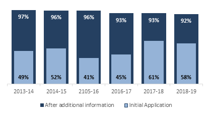 - Figure 6 : Proportion des demandes d’homologation des instruments médicaux qui étaient conformes aux exigences réglementaires lors du premier examen et après que des renseignements supplémentaires aient été demandés et fournis