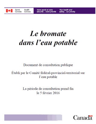 À sa réunion de l'automne 2014, le Comité fédéral-provincial-territorial sur l'eau potable a examiné le document technique sur le bromate dans l'eau potable et en a autorisé la diffusion à des fins de consultation publique.