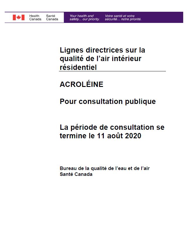 Consultation : Projet de Lignes directrices sur la qualité de l’air intérieur résidentiel pour l’acroléine