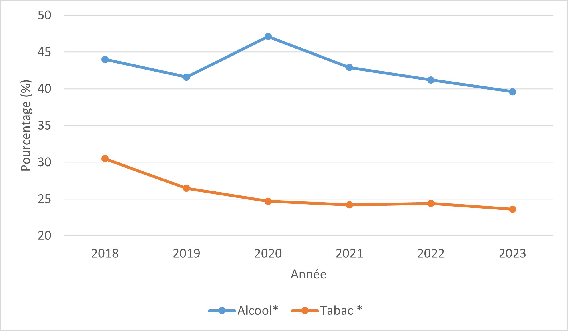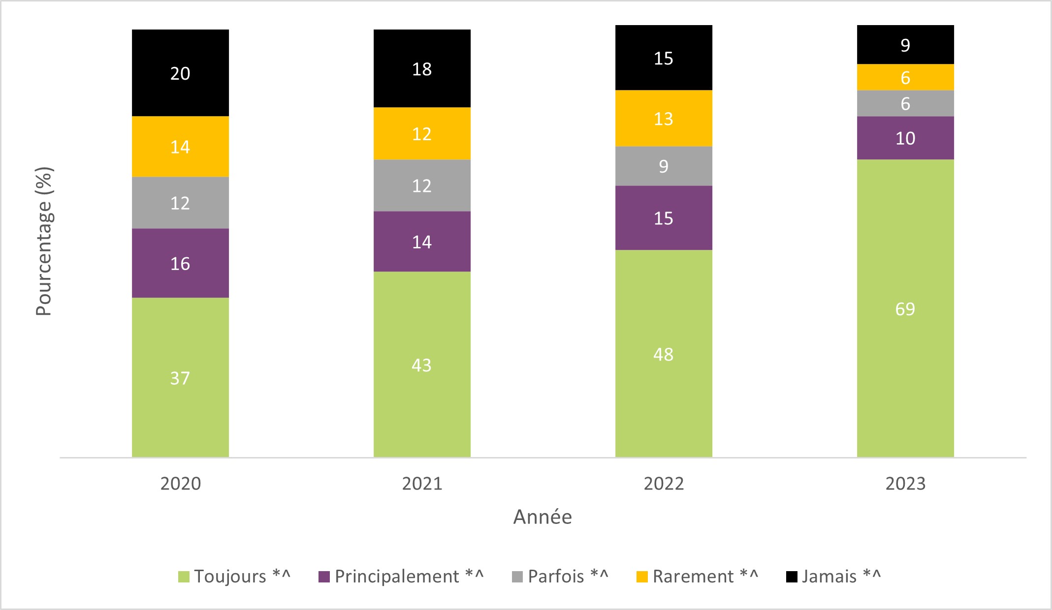 * Différence significative entre 2018 (ou la première année où la question a été posée) et 2023.