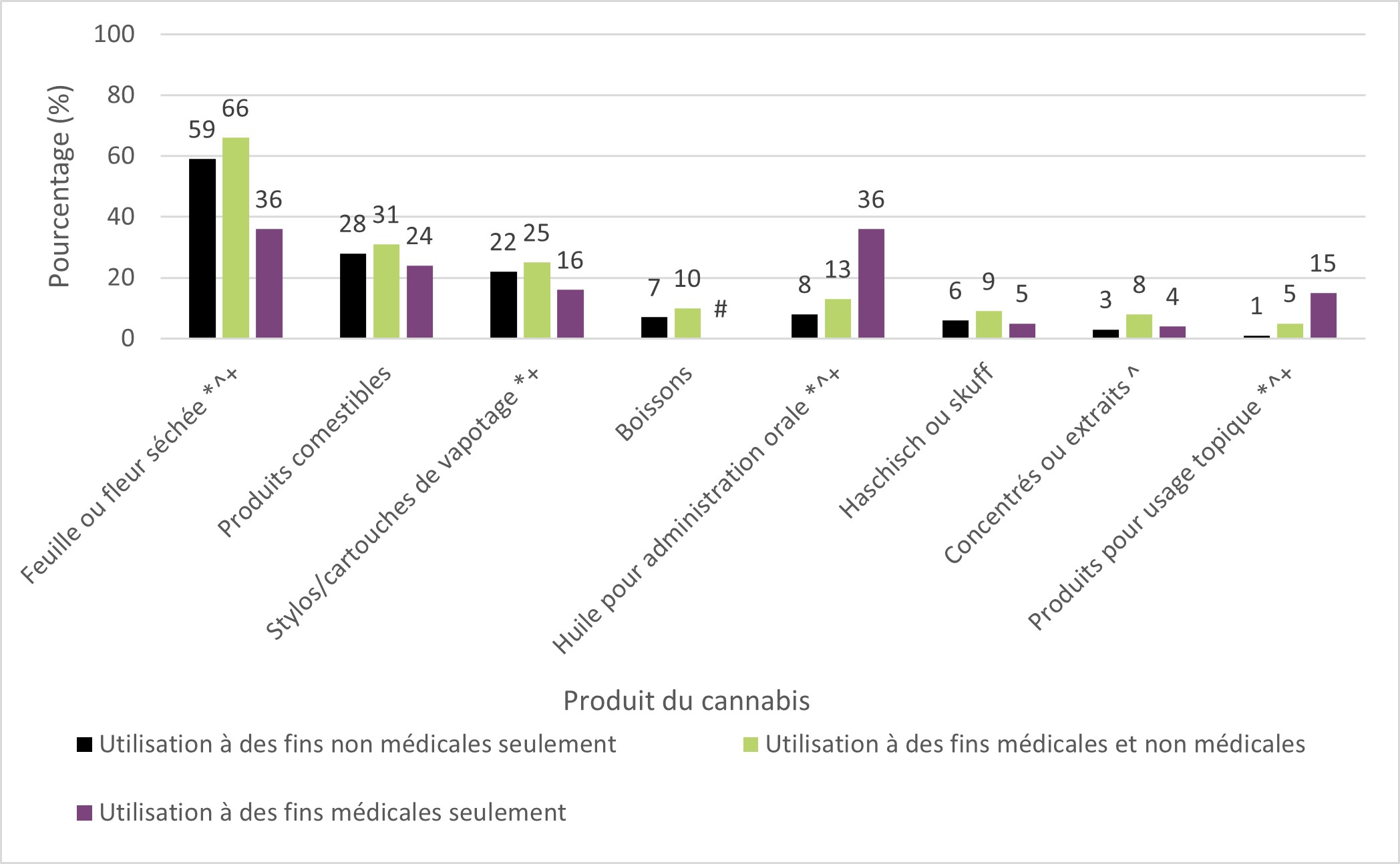 À partir de 2019, on a également demandé aux Canadiens ayant consommé du cannabis à des fins médicales si cette consommation était accompagnée ou non d'un document médical délivré par un professionnel de santé et autorisant la consommation du cannabis à des fins médicales. Dix-huit pour cent (18 %) ont déclaré l'avoir fait avec un document délivré par un professionnel de la santé – une baisse par rapport à 2019 et 2022 (27 % dans les deux cas).
