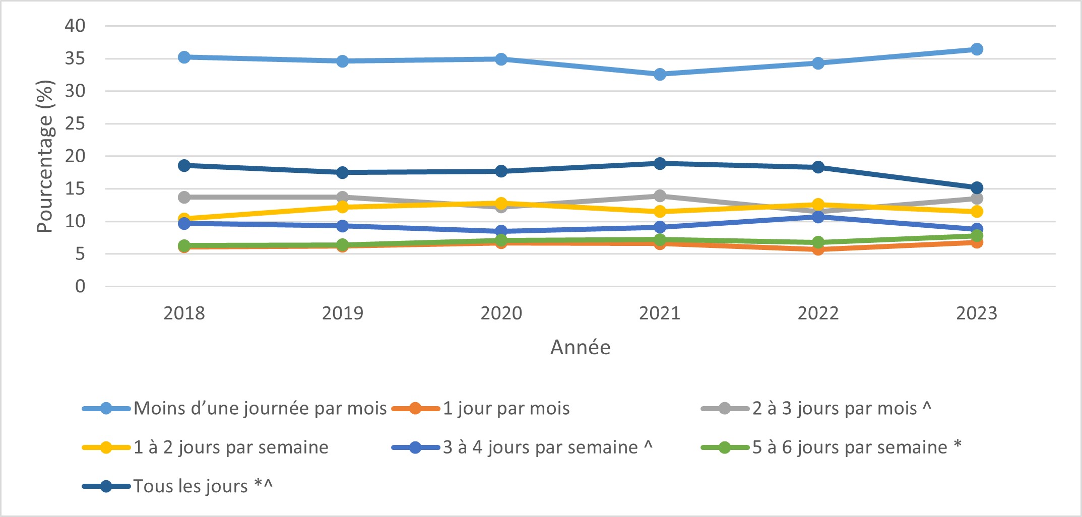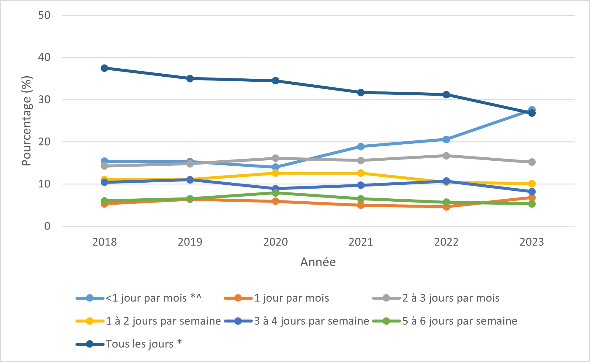 | Tous les jours Figure 25 Note de bas du tableau * | 37 | 35 | 35 | 32 | 31 | 27 |