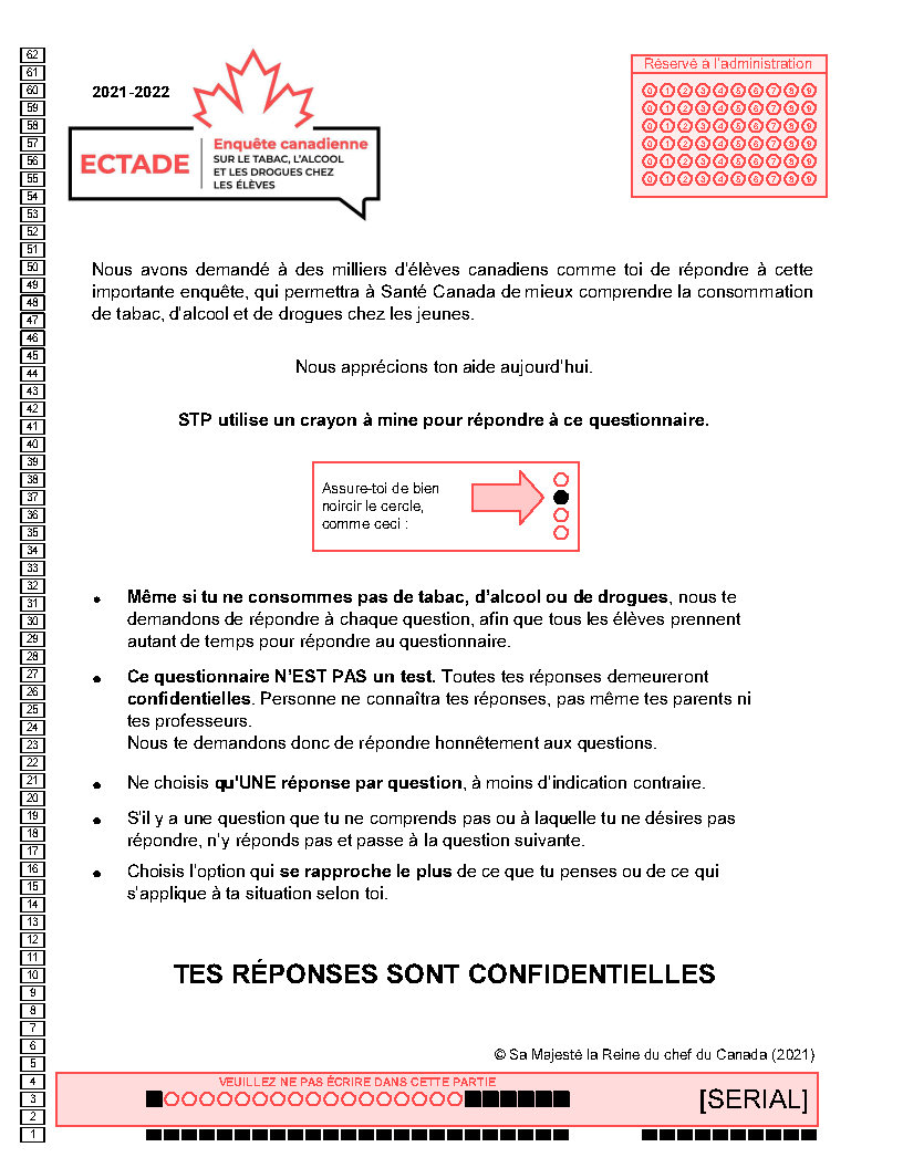 Questionnaire pour L’Enquête canadienne sur le tabac, l’alcool et les drogues chez les élèves 2021-2022