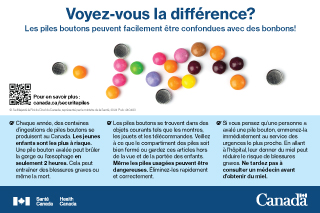 Voyez-vous la différence? Les piles boutons peuvent facilement être confondues avec des bonbons! |