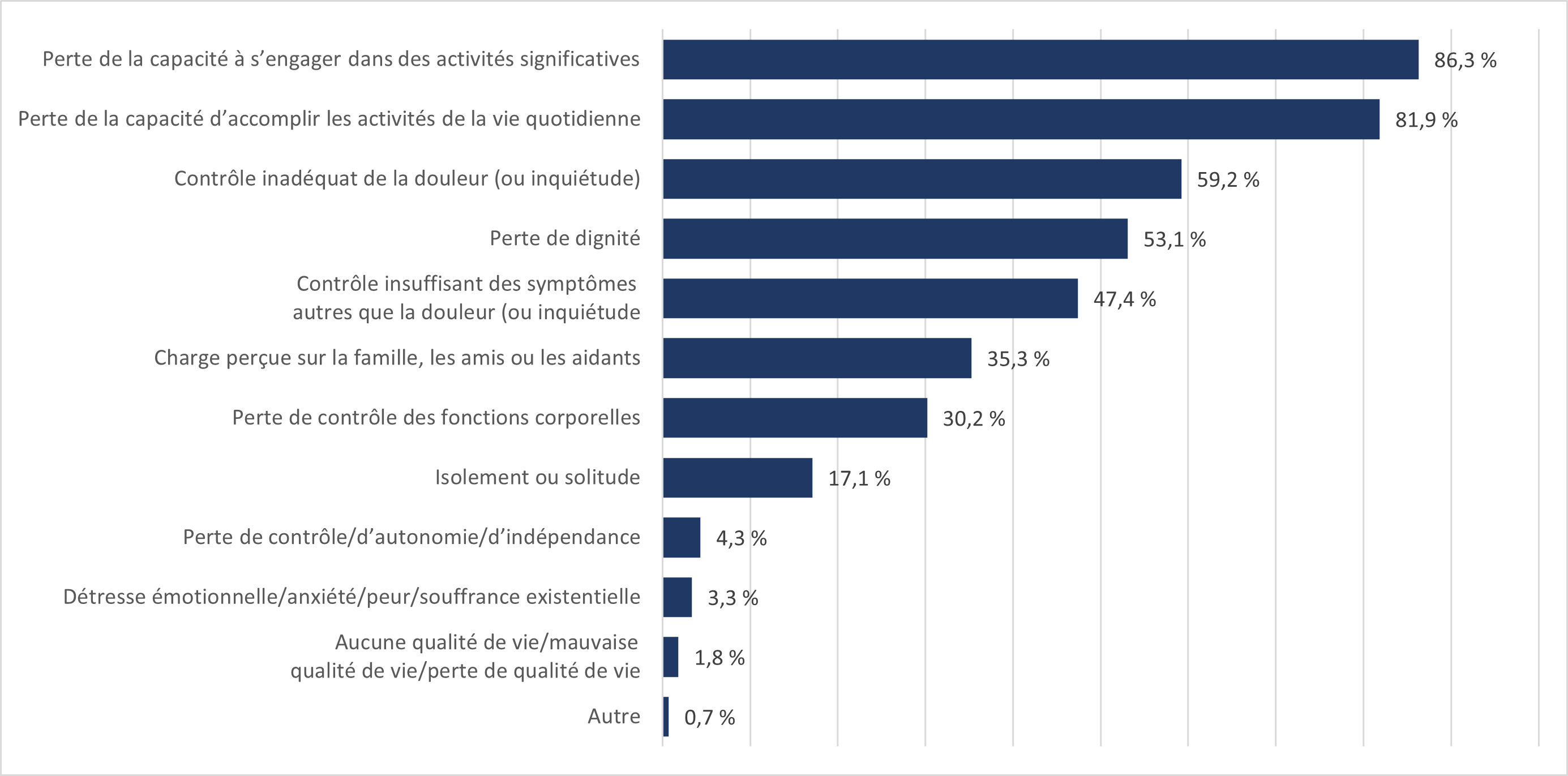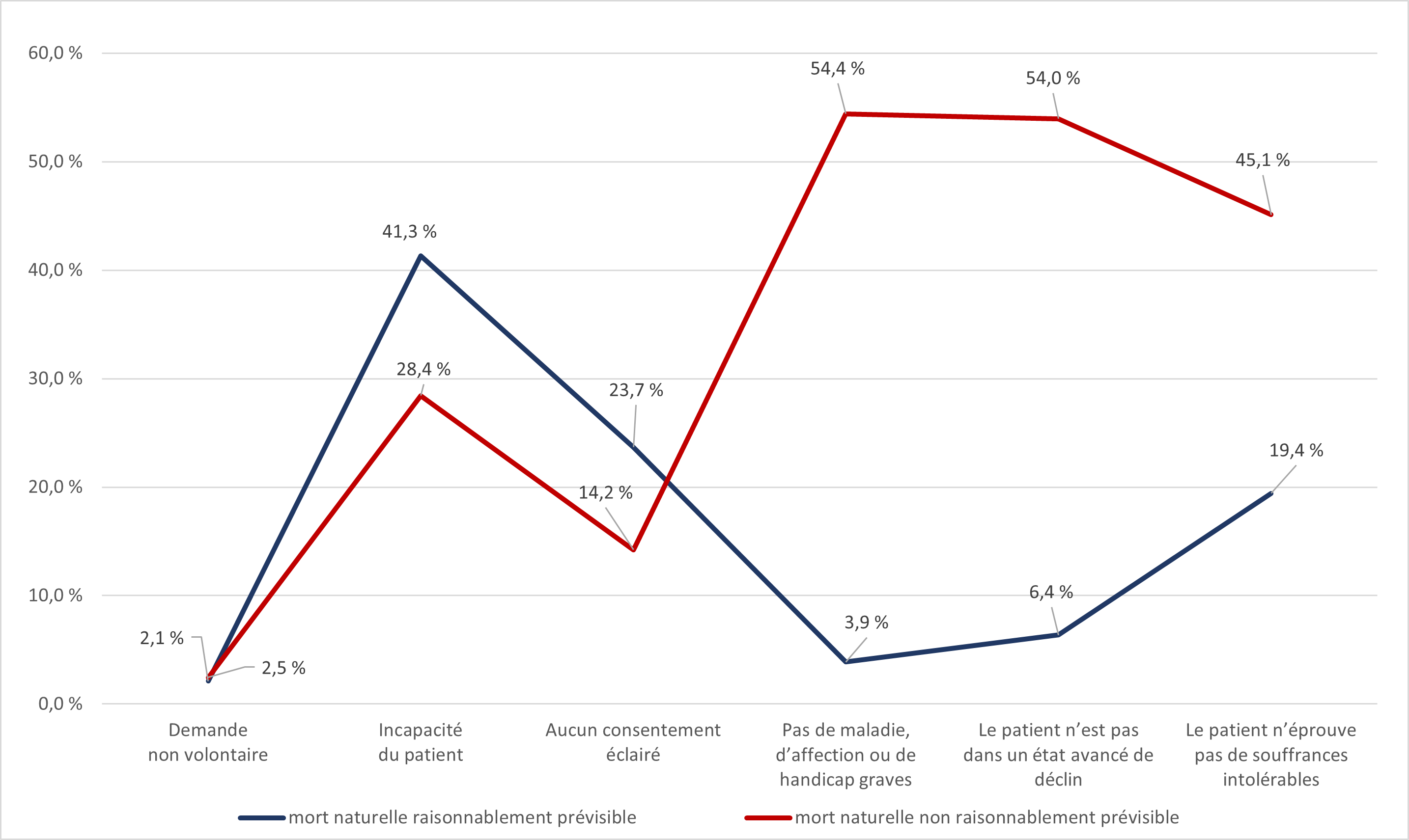 | Les mesures de soins palliatifs sont suffisantes | 50,7 % | 54,1 % | 50,3 % | 41,8 % |