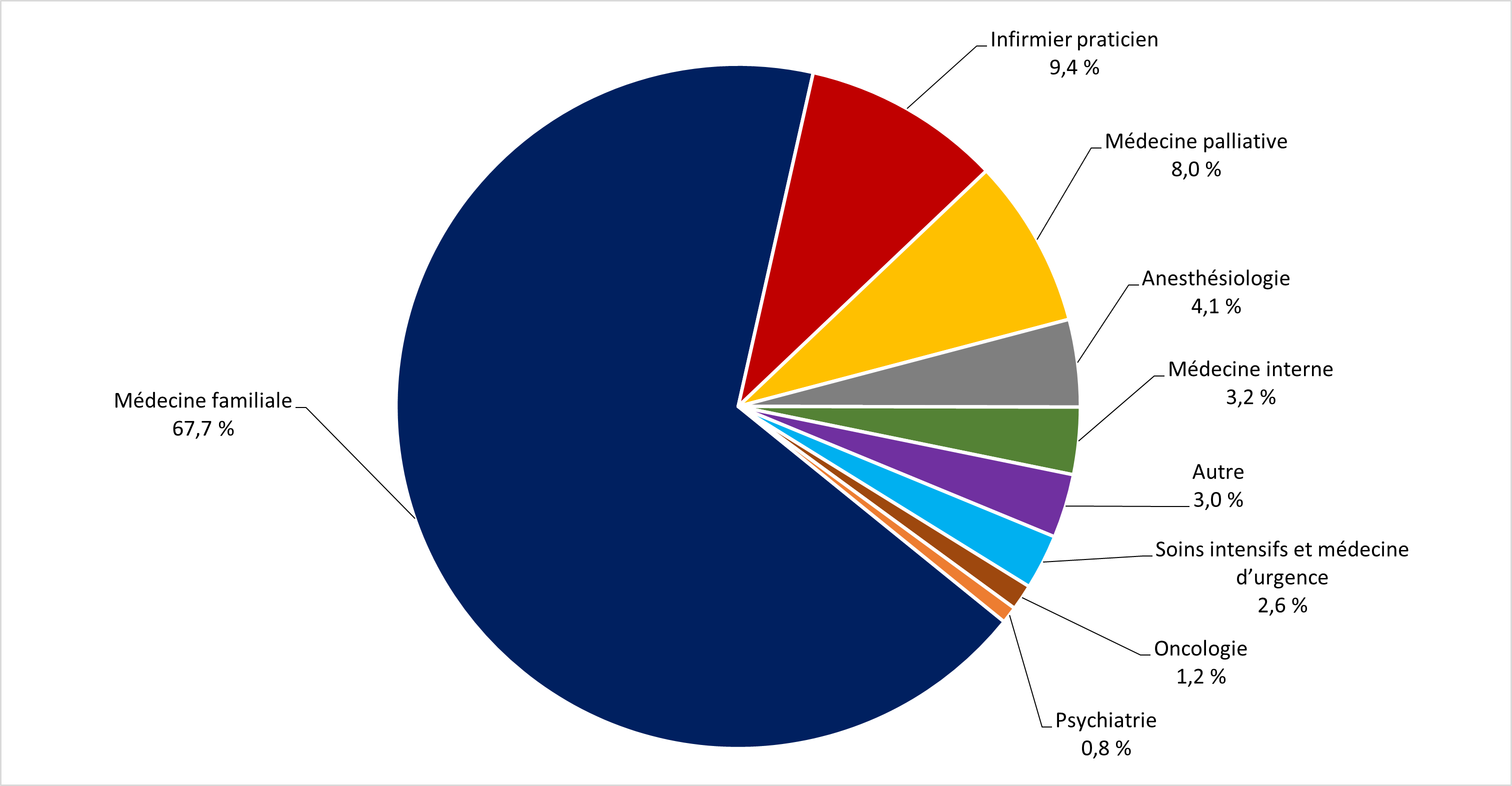 - Parmi les médecins, les médecins de famille administrent la majorité des procédures d'aide médicale à mourir (67,7 %), un chiffre constant par rapport aux résultats des dernières années.