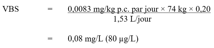 Remarque : Des conseils spécifiques concernant l'application des recommandations pour l'eau potable devraient être obtenus auprès de l'autorité appropriée en matière d'eau potable.