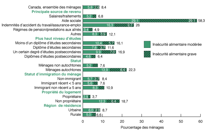 - 8,4 % des ménages non immigrants étaient en situation d'insécurité alimentaire