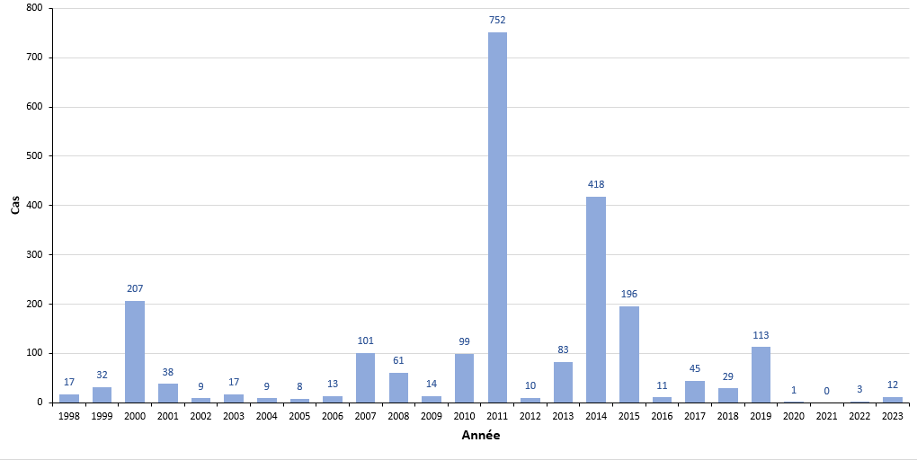 | Année | Cas totaux |