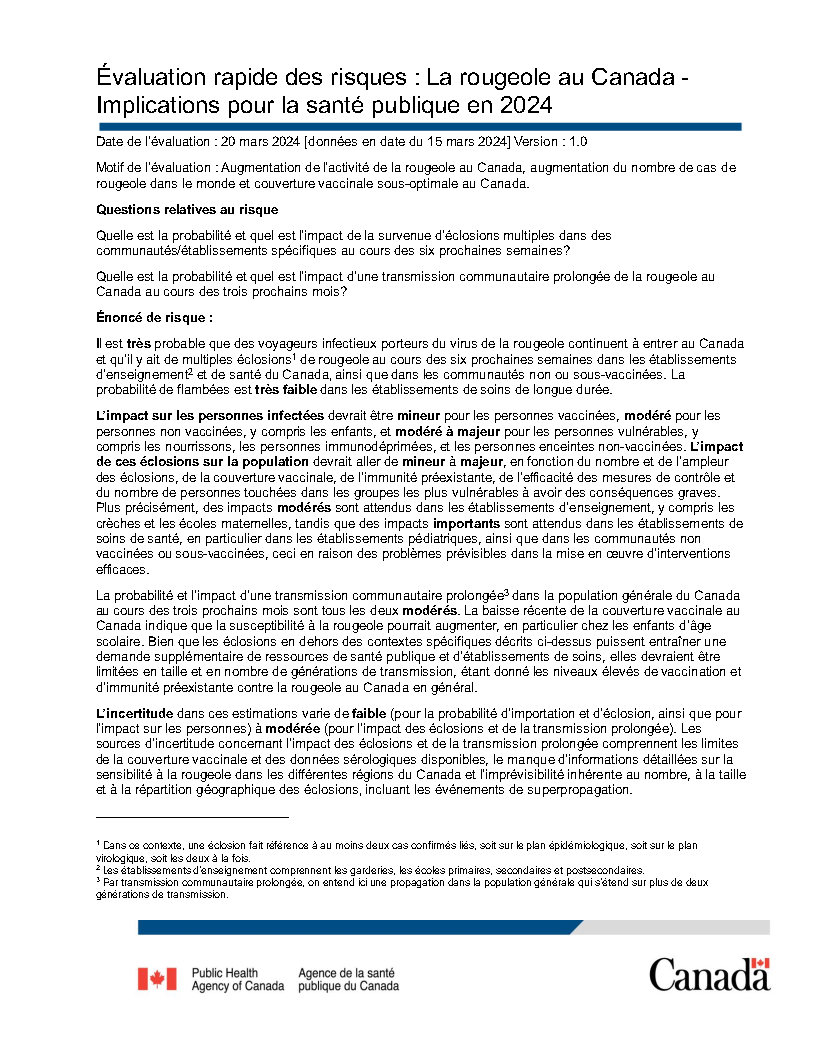 Évaluation rapide des risques : Rougeole au Canada, répercussions pour la santé publique en 2024