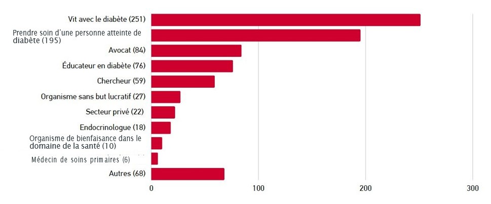 L’enquête sur la plateforme Ethelo a offert aux parties prenantes la plus grande occasion d’engagement, 884 personnes y ayant participé. La majorité de ces contributions provenaient de personnes s’identifiant comme des femmes (73 %) et des personnes blanches/ caucasiennes (80 %). 35 personnes se sont identifiées comme autochtones (Premières Nations, Inuk/Inuit, Métis) (5,9 %). Les participants établis en Ontario et en Colombie-Britannique représentaient 50 % du total. La répartition régionale était similaire à celle de la population globale. 55 % des participants ont indiqué qu’ils étaient atteints d’un type de diabète ou qu’ils s’occupaient d’une personne atteinte de diabète.