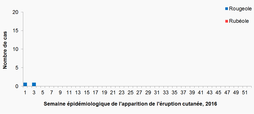 - Au total, 2 cas de rougeole et 0 cas de rubéole ont été signalés au Canada en 2016.