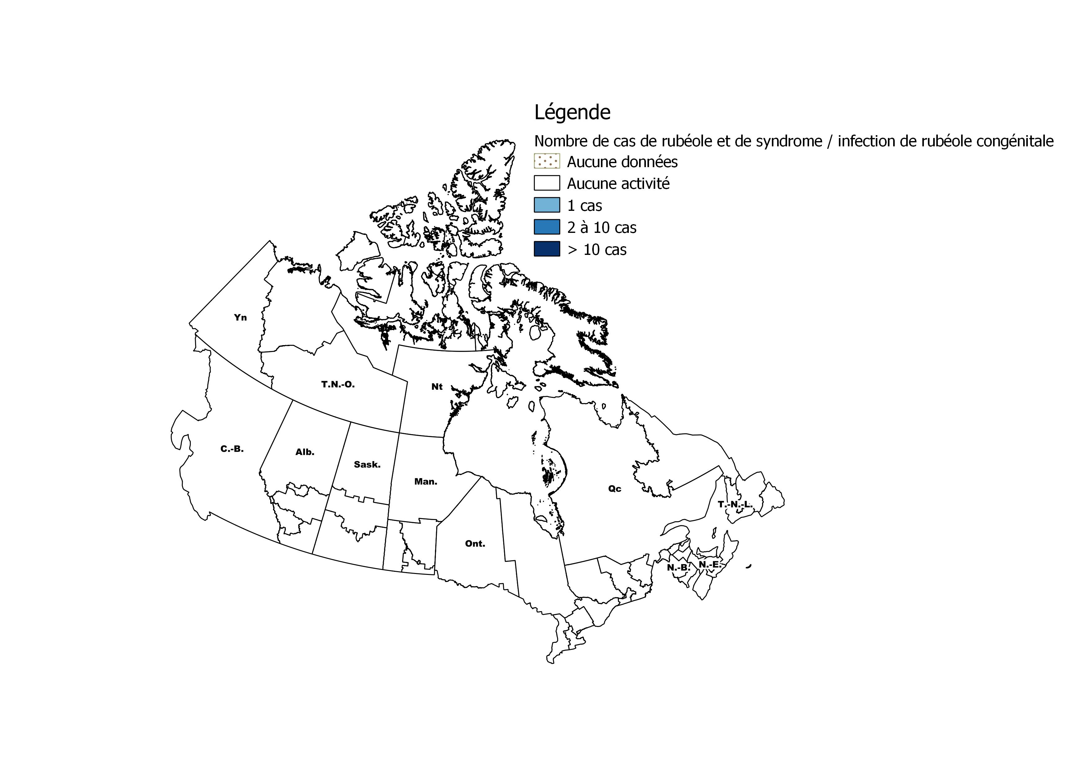 - Il n'existe actuellement aucun cas de rougeole ni de rubéole actifNote de bas de page 1 au Canada.